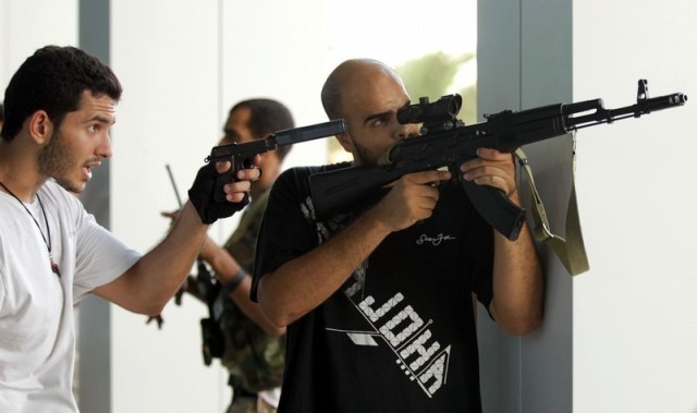 This picture shows a rebel sniper/counter-sniper with an FAL fitted with a commercial hunting scope. Reports have referred to Libyan rebels using Bushnell telescopic sights.