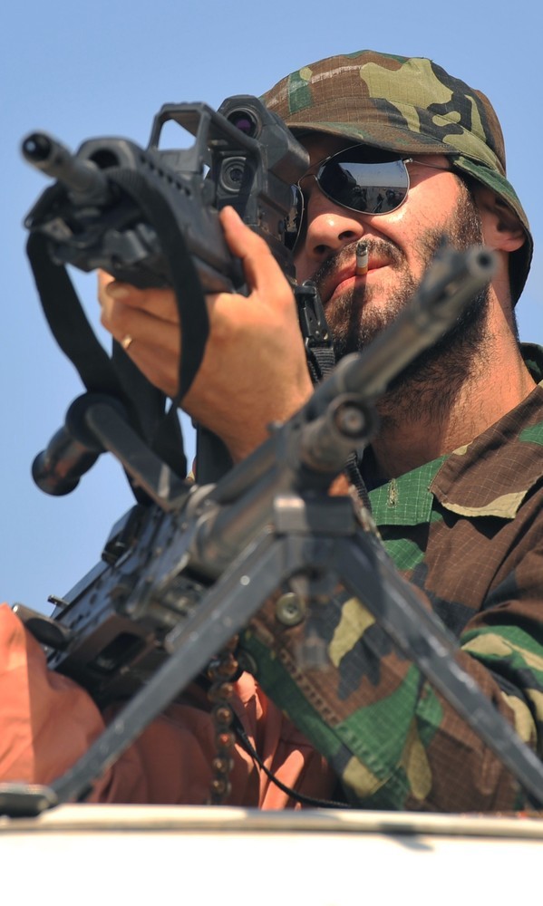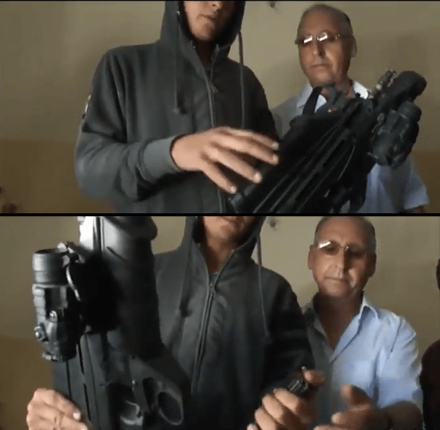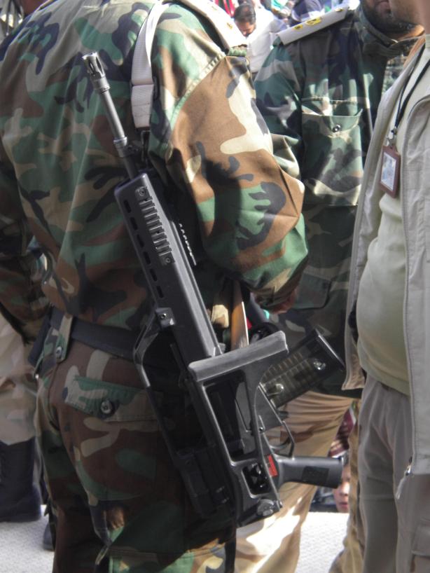 Here’s a great shot of the G36’s combined 3x telescopic sight and 1x reflex sight optics taken in Ragdalin, Western Libya.