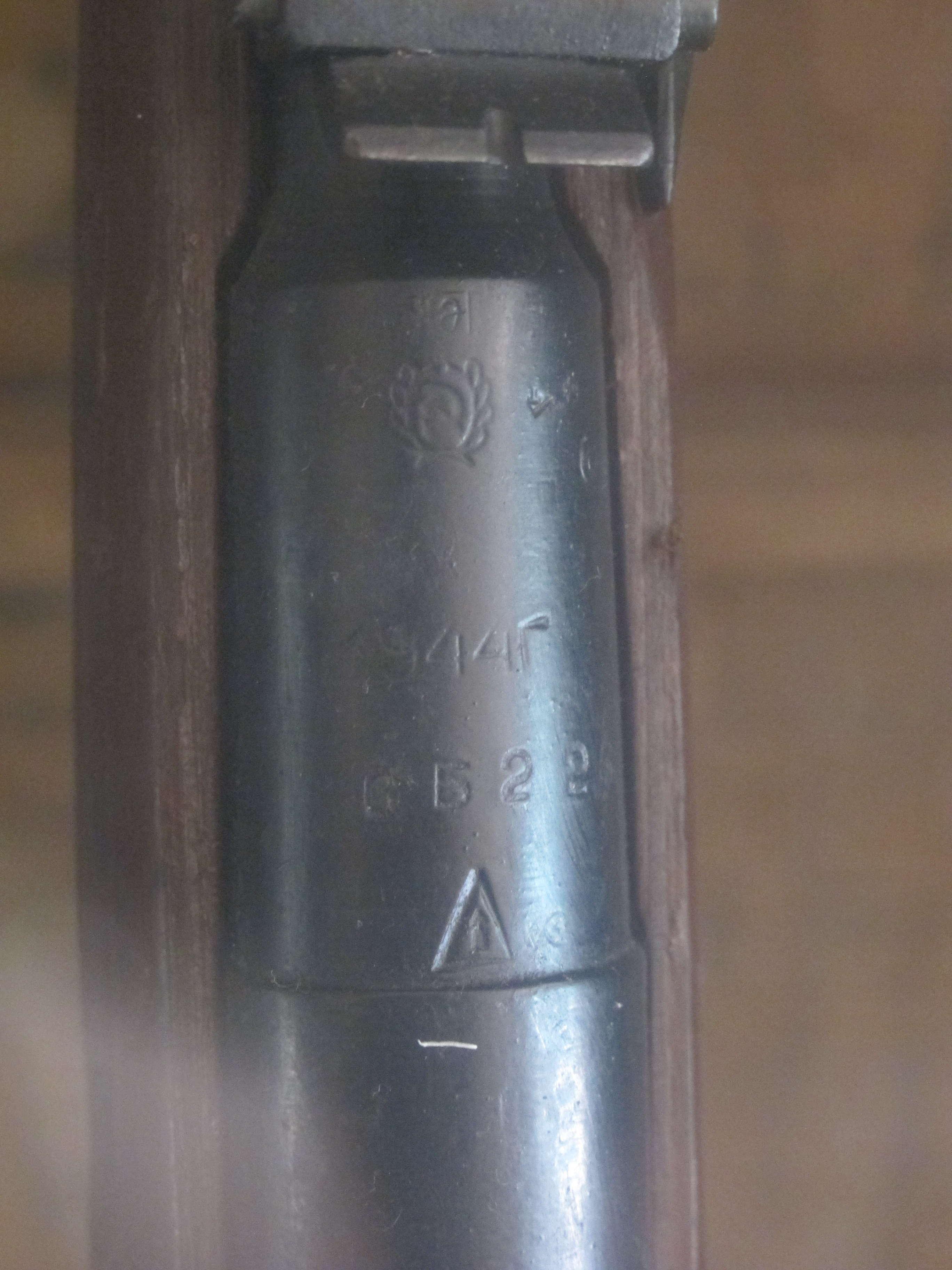 1. Manufactured at the Izhevsk factory (now IZHMASH), Russia, in 1944. There were three examples from Izhevsk amongst the eight. [Markings]
