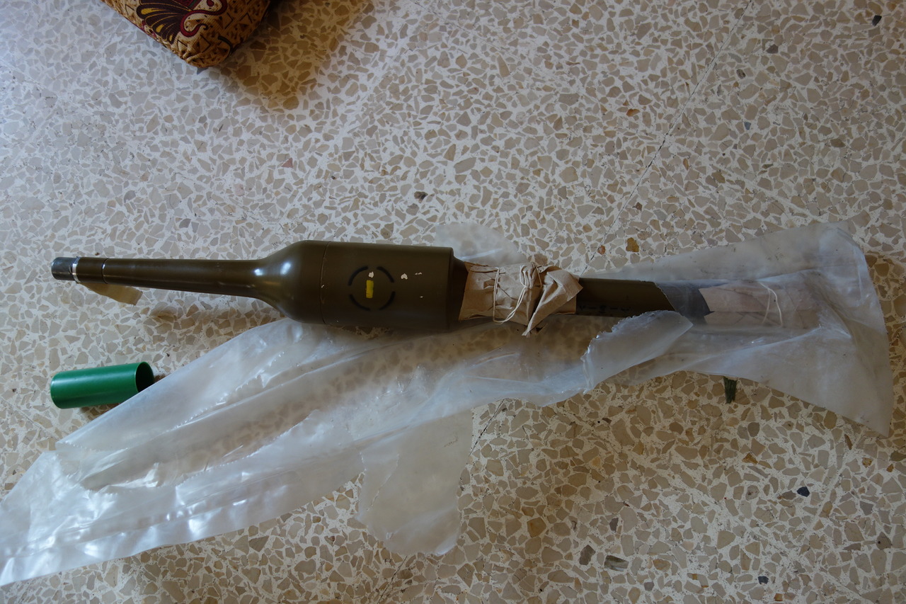 What is probably an Iranian tandem HEAT projectile. Photo: Lens Young Homsi.